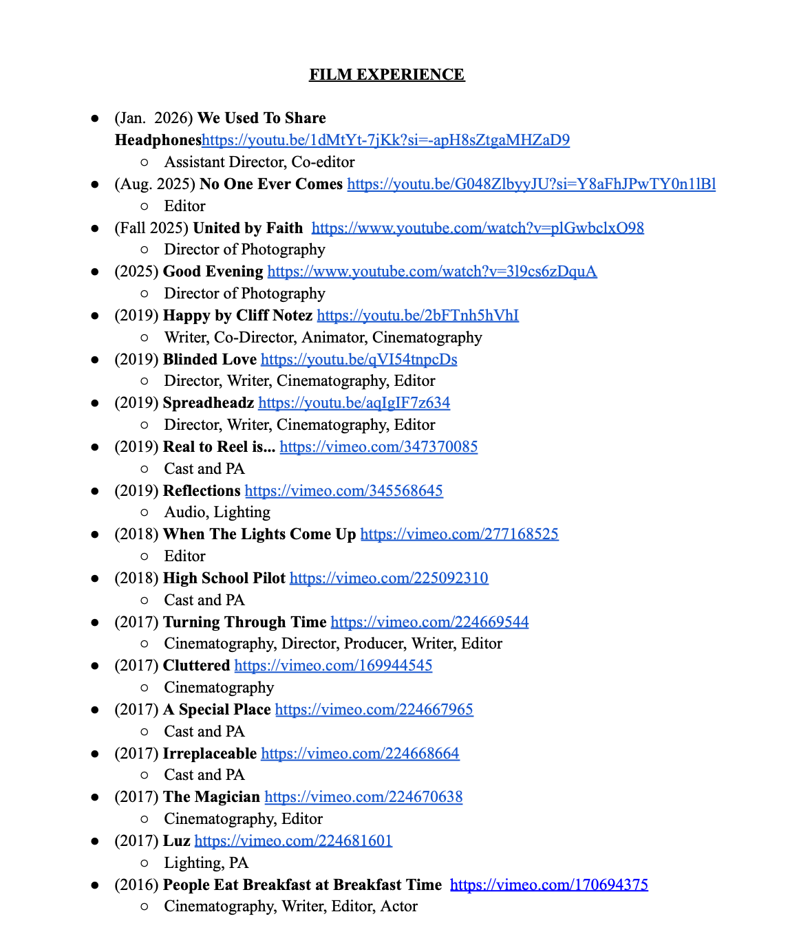 SYDNEY field is a filmmaker and photographer from Lynn, Massachusetts. She is experienced in different fields of production, including directing, cinematography, editing, storyboarding, screenwriting and more. she Has had personal films screened in over 6 festivals, internationally. She recently interned under film usa at the 2024 cannes international film festival. Service and people-oriented.
